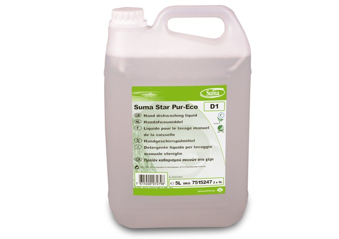 Suma Star Pur - Eco D1 è un detergente concentrato per la pulizia di pentole, stoviglie, bicchieri e tutti gli utensili lavabili presenti in cucina.