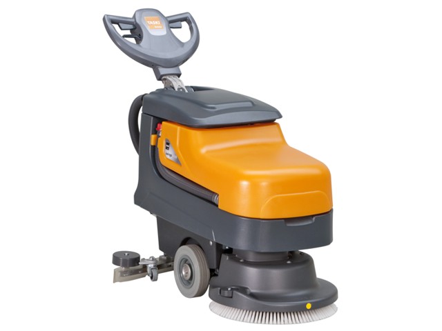 TASKI SWINGO 455 , in versione a batteria o a cavo , è la lavasciuga per piccoli e medi ambienti anche in presenza di sporco pesante .