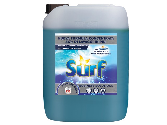 Surf Lavatrice Liquido Professionale è il detersivo concentrato per il lavaggio di tutti i tipi di biancheria, ideale per il lavaggio dei capi colorati, perchè efficace già alle basse temperature.