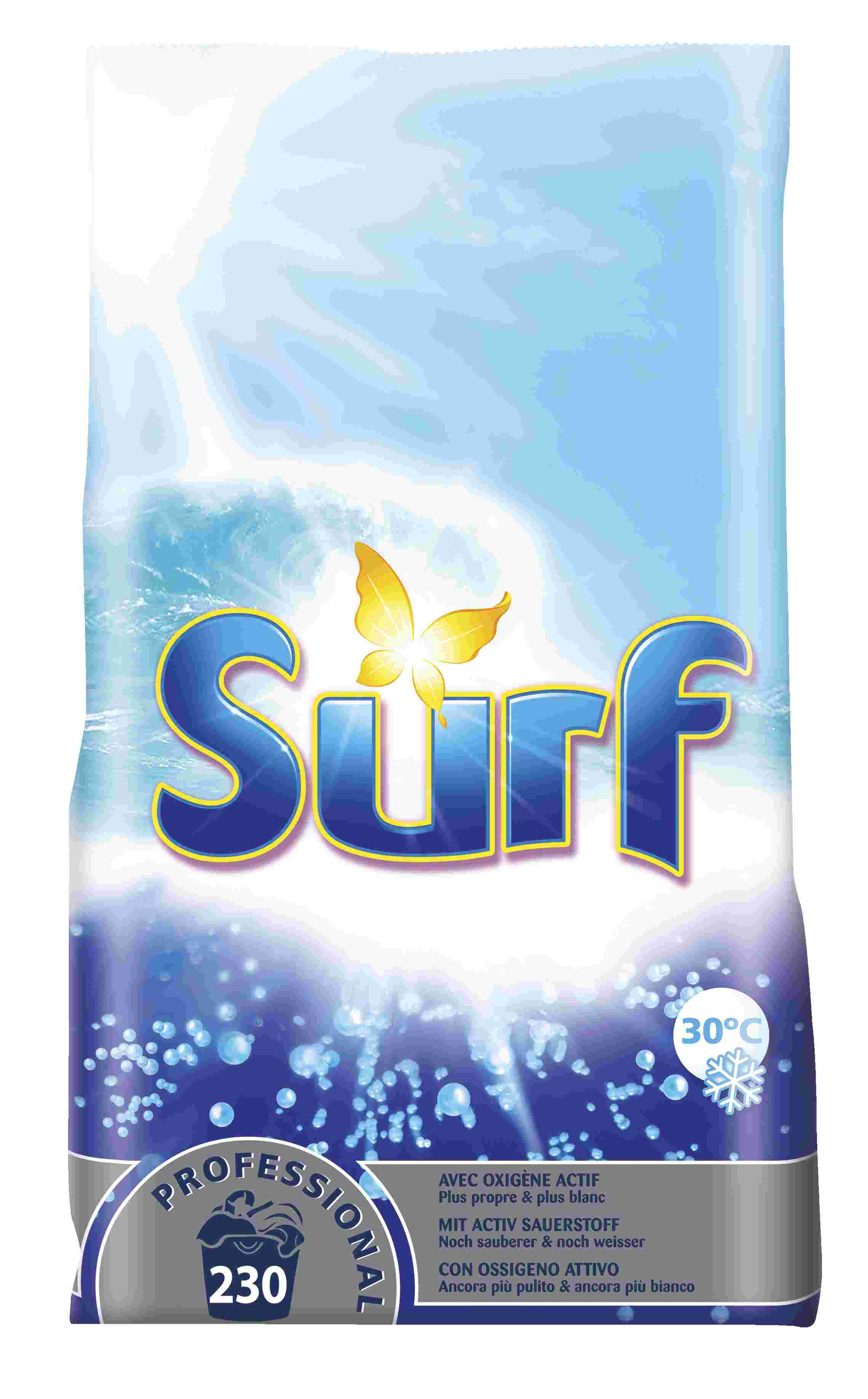 Surf Polvere Lavatrice Professionale è stato sviluppato per il dosaggio manuale in lavatrice e può essere utilizzato in acque di qualsiasi durezza.