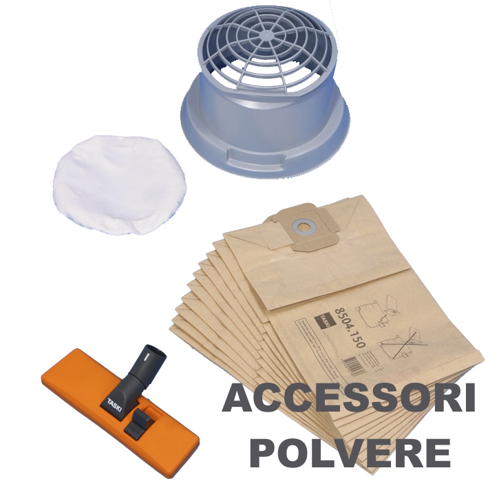 • l'aspirazione sia di polvere che di liquidi grazie all'ampia gamma di accessori disponibili; il passaggio all'aspirazione polvere è estremamente semplice grazie alla sostituzione di accessori ad innesto rapido che permettono di aspirare anche su pavimenti, superfici o rivestimenti tessili;
